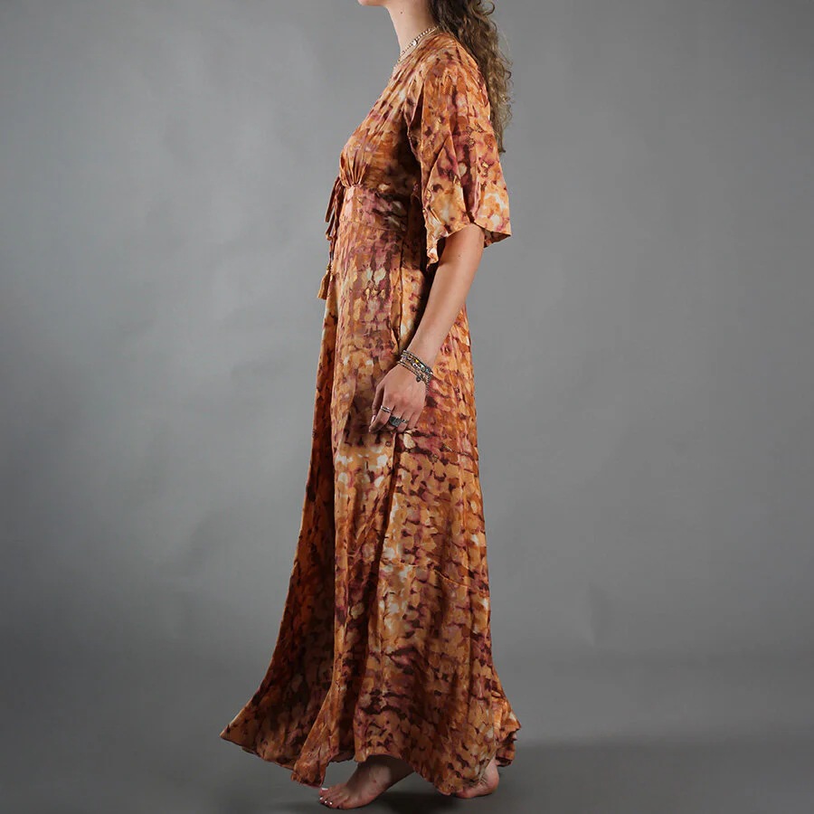 Abito lungo in seta con maniche a tre quarti ampie, in esclusivo Vaso.