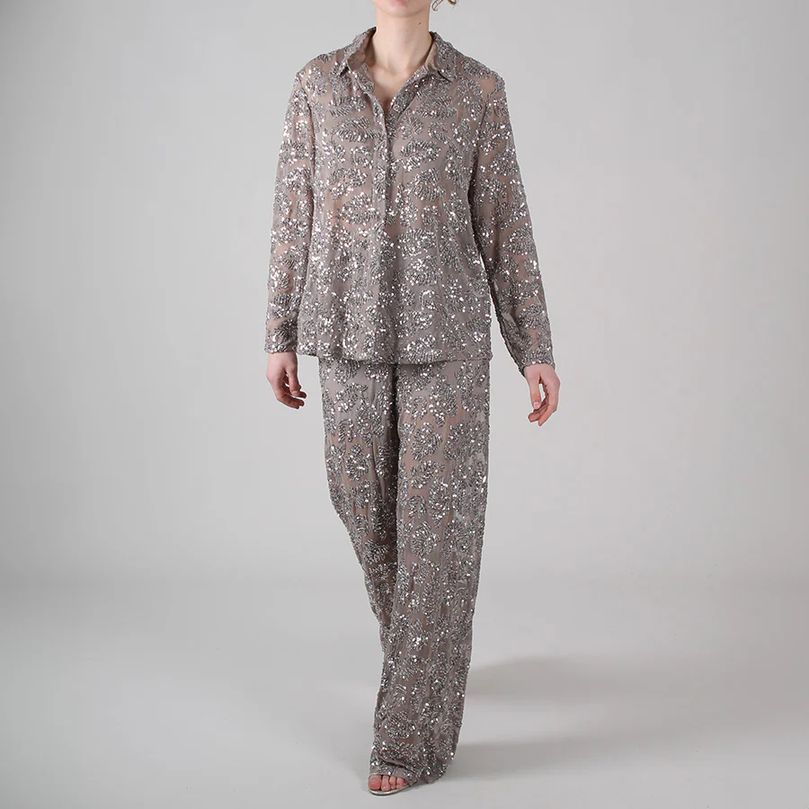 Camicia Luce, in tulle elasticizzato con prezioso ricamo in paillettes.