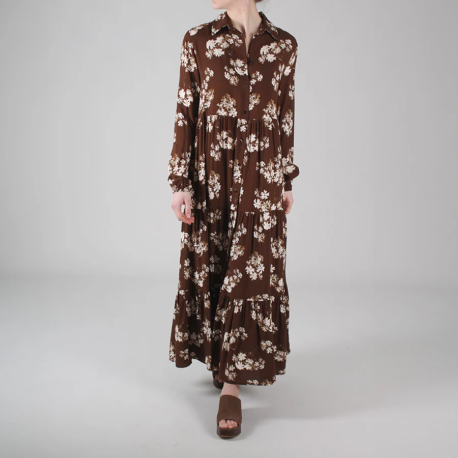 Colletto classico e bottoni su tutta la lunghezza dell'abito.
