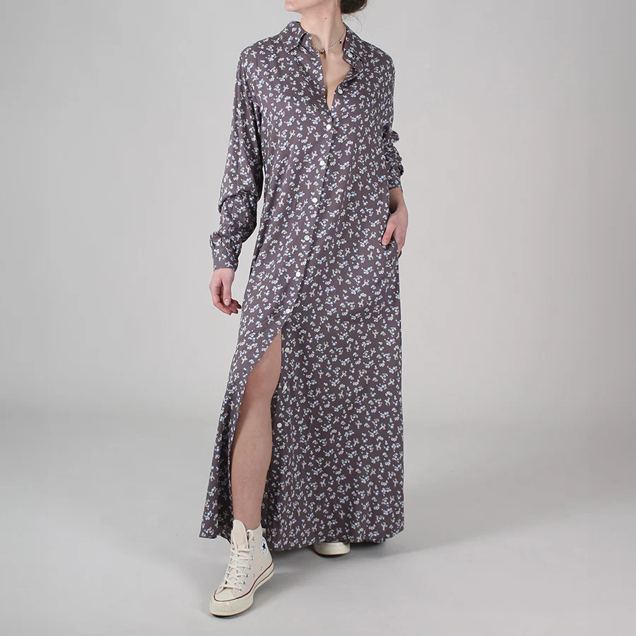 Colletto classico e bottoni su tutta la lunghezza dell'abito.