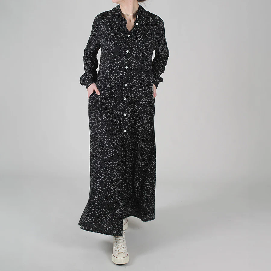 Colletto classico e bottoni su tutta la lunghezza dell'abito.