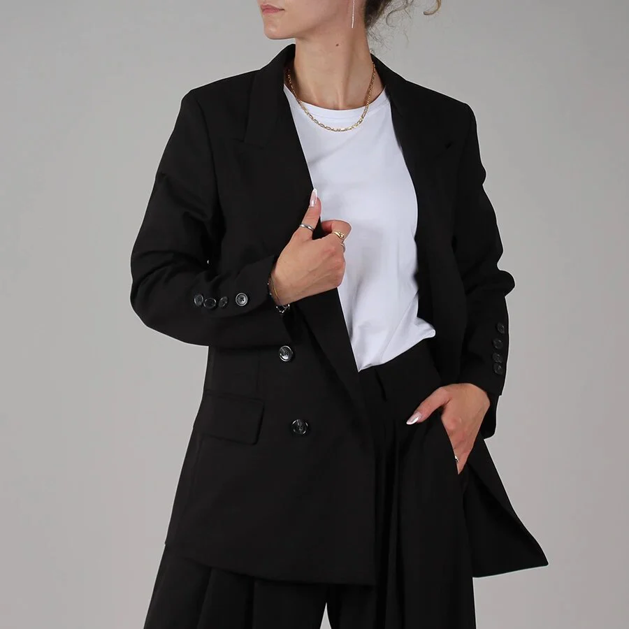 Blazer modello sartoriale, chiusura doppiopetto. Reverse classico, taschine applicate.