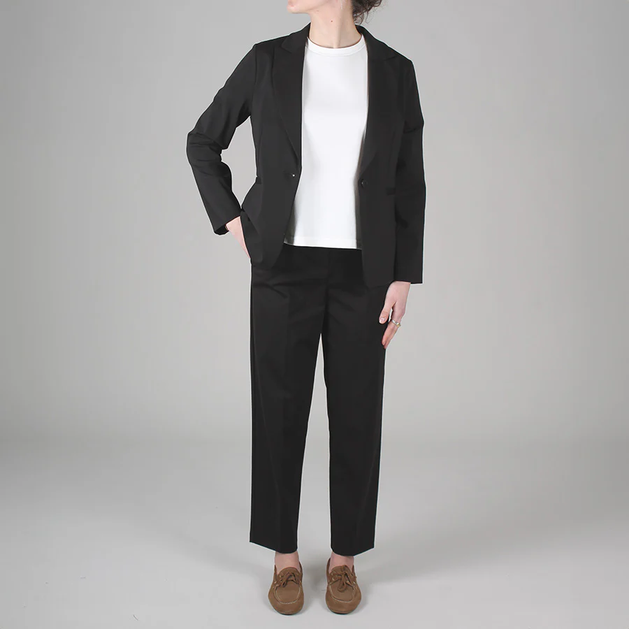 Giacca in punto Milano elasticizzato, dalla vestibilità leggermente slim.