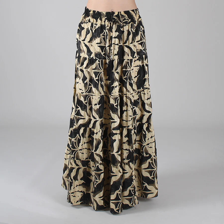 Gonna lunga in seta a balze, elastico in vita e culisse.