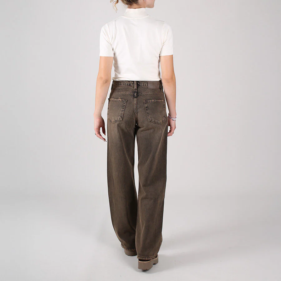 Jeans modello gamba dritta, leggermente ampia. Lavaggio moro vintage.