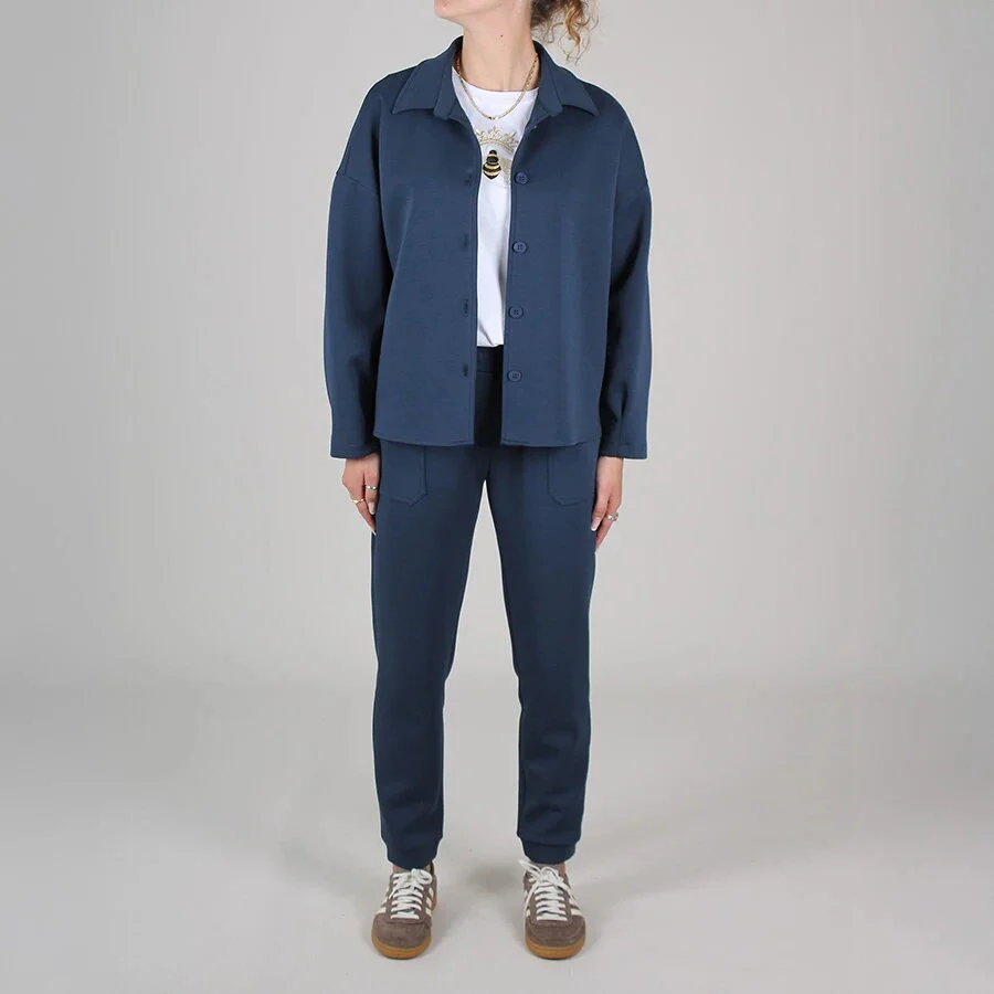 pantalone modello jogger con elastico in vita e tasche laterali, polsino morbido sul fondo.
